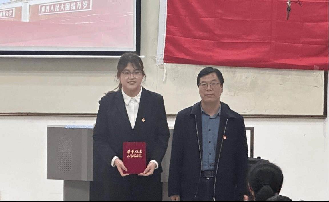 李會榮副書記為一等獎獲得者白易媛頒獎并合影留念