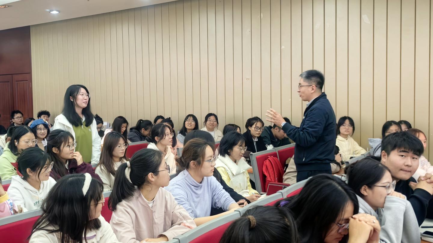 徐斌結合自己多年英語教學與研究經驗,通過對英語四級考試現(xiàn)狀的綜合剖析,深入講解了考試重要性、備考策略、復習方法、考試技巧及寫作專項突破等方面以及如何利用學校購買的3E英語多媒體數據庫進行有效備考。通過中英雙語講授、鮮活生動的案例、句句點睛的解讀,為我校學生講授了一堂干貨滿滿的CET-4備考指南課。講座受到在場學生的一致好評,現(xiàn)場氛圍熱烈高漲。