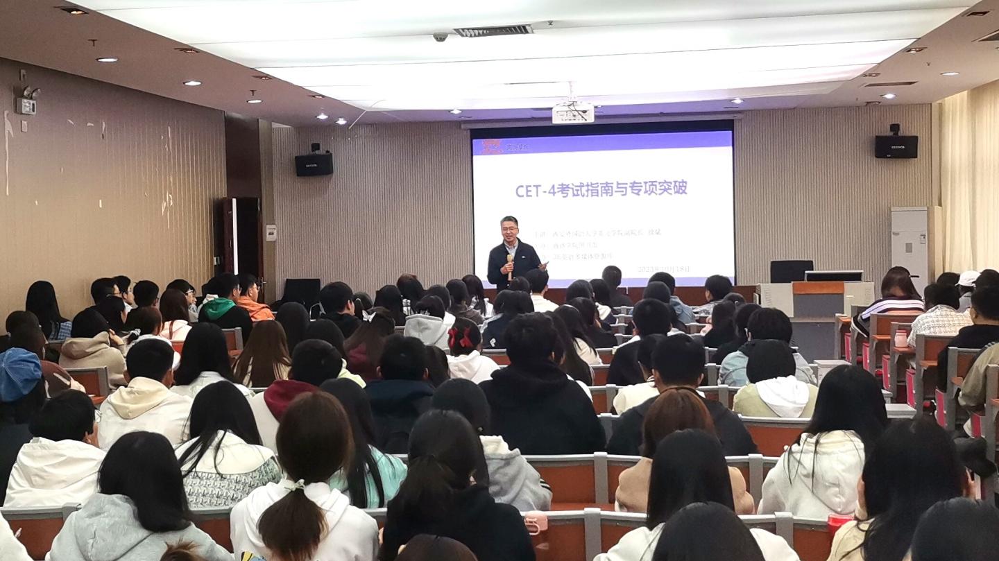 為深化學生對大學英語四級考試認識,提高備考策略與方法,樹立考試信心,10月18日下午,圖書館在丹江校區(qū)舉辦“CET-4考試指南與專項突破”專題講座。講座邀請西安外國語大學英文學院副院長徐斌作為主講。各二級學院備考學生近200人參加講座。