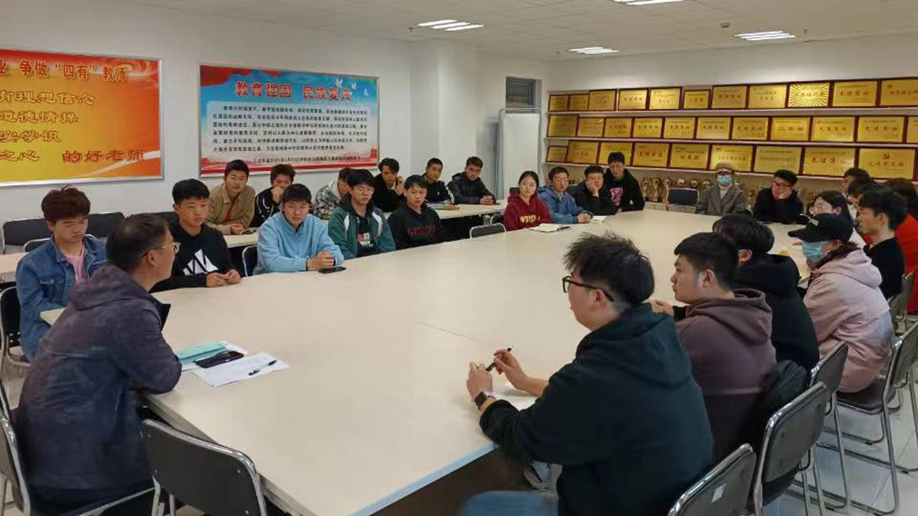 強化班長隊伍責任擔當意識,發(fā)揮班長的集體帶頭作用及引領作用。11月8日,班長座談會上,在對畢業(yè)學位資格審查、獎助學金評定、推優(yōu)入黨、綜合素質(zhì)測評等方面深入解讀的基礎上,學院全體輔導員與37位班長代表圍繞學習環(huán)境創(chuàng)設、學生寢室用電用水、專業(yè)學科競賽、學院集體活動組織等方面進行充分交流。與會班長代表劉永杰和徐秋駿就班級凝聚力建設、學風建設、學生志愿活動、活動組織等方面進行經(jīng)驗分享。