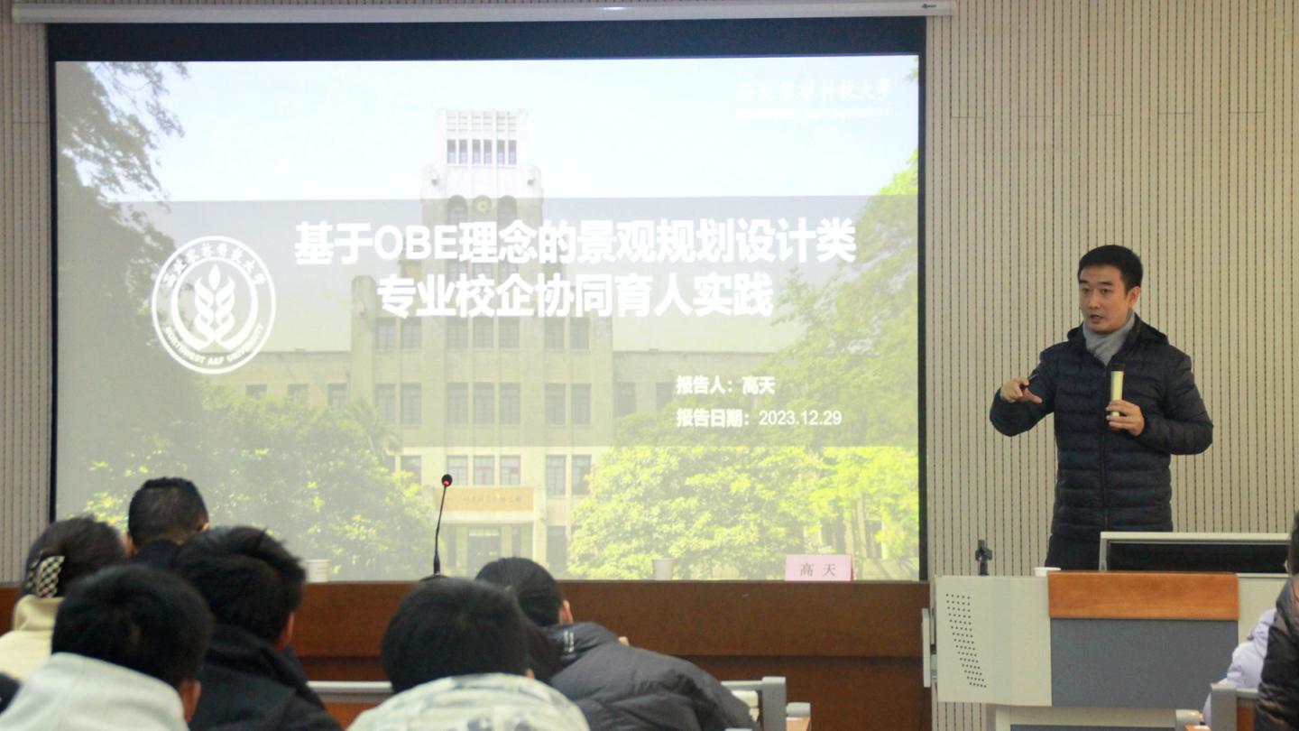 高天教授結(jié)合自身從事(風(fēng)景)園林專業(yè)教學(xué)和科研實(shí)踐,分別以《基于OBE理念的景觀規(guī)劃設(shè)計(jì)類專業(yè)校企協(xié)同育人實(shí)踐》《跨學(xué)科研究引領(lǐng)(風(fēng)景)園林學(xué)科發(fā)展》為題,為師生們作了兩場(chǎng)精彩的報(bào)告。他結(jié)合教學(xué)團(tuán)隊(duì)長(zhǎng)期的教學(xué)改革實(shí)踐和所取得的成果,從獨(dú)特視角剖析了基于OBE理念的園林專業(yè)人才培養(yǎng)模式,并詳細(xì)介紹了園林專業(yè)校企協(xié)同育人合作方式,基于項(xiàng)目落地的過程考核,科創(chuàng)項(xiàng)目和學(xué)科競(jìng)賽準(zhǔn)備及參賽要點(diǎn)等。針對(duì)園林專業(yè)師生科研課題選擇問題,提出圍繞一種植物、針對(duì)一個(gè)點(diǎn)的T字型研究思路,并結(jié)合生態(tài)文明建設(shè)和鄉(xiāng)村振興分析了(風(fēng)景)園林學(xué)科研究熱點(diǎn)問題,激發(fā)了學(xué)生專業(yè)興趣。