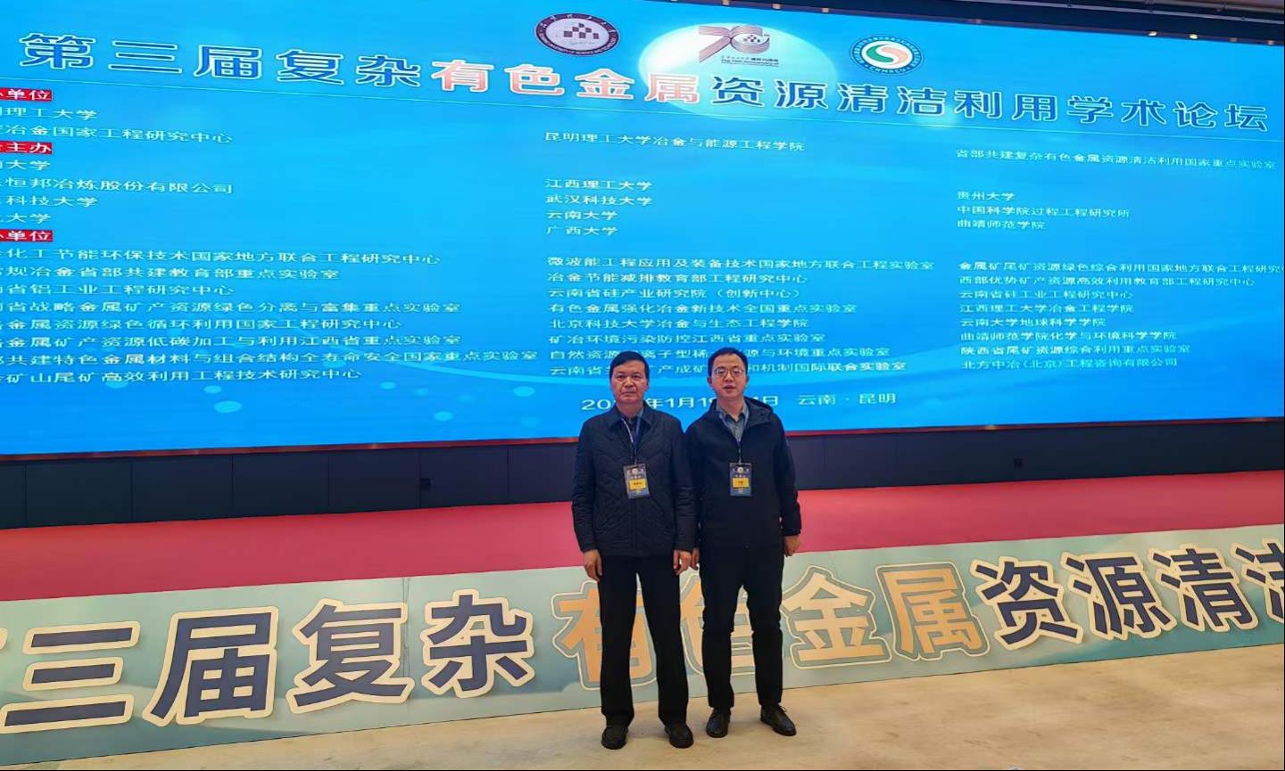 1月19日-21日,第三屆復(fù)雜有色金屬資源清潔利用學(xué)術(shù)論壇在昆明召開。本次論壇由昆明理工大學(xué)、省部共建復(fù)雜有色金屬資源清潔利用國家重點實驗室、真空冶金國家工程研究中心主辦,我校陜西省尾礦資源綜合利用重點實驗室、冶金礦山尾礦高效利用工程技術(shù)研究中心等單位承辦?;膶W(xué)院院長、陜西省尾礦資源綜合利用重點實驗室主任周春生教授和劉璇副教授參加會議。
