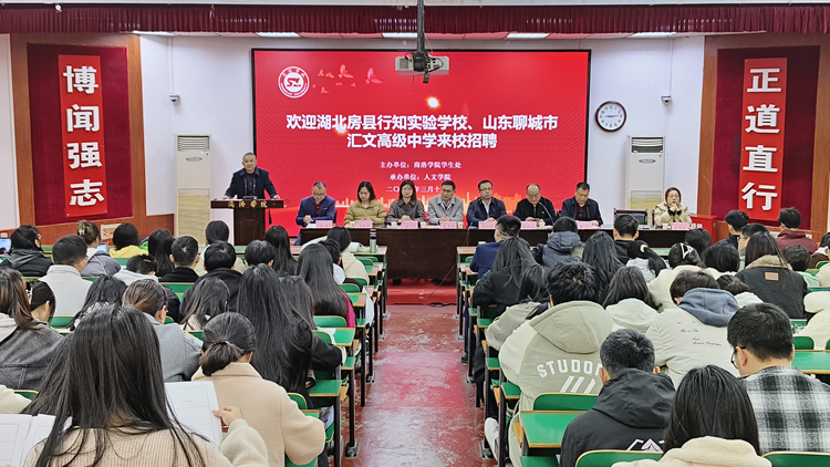為扎實(shí)做好穩(wěn)就業(yè)工作,促進(jìn)供需精準(zhǔn)對(duì)接,3月14日上午,人文學(xué)院舉辦2024年春季學(xué)期師范類專場(chǎng)招聘會(huì),邀請(qǐng)湖北房縣行知實(shí)驗(yàn)學(xué)校、聊城市匯文高級(jí)中學(xué)與學(xué)生進(jìn)行雙向洽談。人文學(xué)院黨委書記杜明生、院長(zhǎng)張文諾,學(xué)生處處長(zhǎng)李彥廣、副處長(zhǎng)張文到招聘會(huì)現(xiàn)場(chǎng)指導(dǎo),并與兩家用人單位圍繞校企合作、人才培養(yǎng)等方面深入交流。