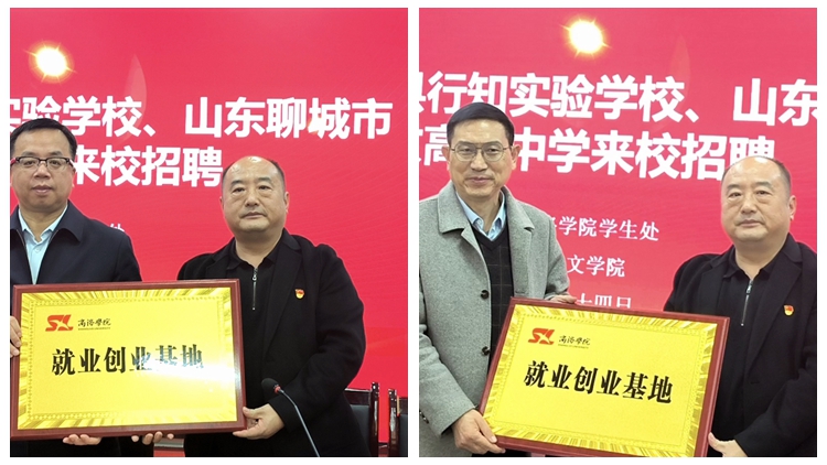 會(huì)上,杜明生代表人文學(xué)院與湖北房縣行知實(shí)驗(yàn)學(xué)校、聊城市匯文高級(jí)中學(xué)分別簽訂了就業(yè)創(chuàng)業(yè)基地協(xié)議并進(jìn)行了授牌。