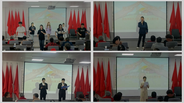 活動現(xiàn)場,歌曲《奢香夫人》節(jié)奏歡快、點燃全場,通過歌聲向老人們傳遞樂觀豁達的心緒,祝愿老人們笑顏永駐。詩歌朗誦《學雷鋒 孝為先》以樸實溫馨的言語抒發(fā)了雷鋒愛國、愛黨、愛民的大愛情懷,也彰顯出新時代青年積極踐行奉獻社會與尊老愛老的價值追求。小合唱隊伍激情澎湃地向祖國母親獻上一首《愛我中華》,將活動氣氛推向高潮。臺下老人熱淚盈眶,掌聲連連。歌曲《女兒情》、戲曲《探窯》也是老人們喜愛的節(jié)目,青年學子盡己所能地讓老人們聽到熟悉的音樂曲目,讓溫暖真正抵達老人們的內心。活動最后,蔣小康同學帶領大家集體表演了舞蹈《相親相愛》,祝愿社區(qū)老人們身體健康、萬事如意,希望天下一家、相親相愛。