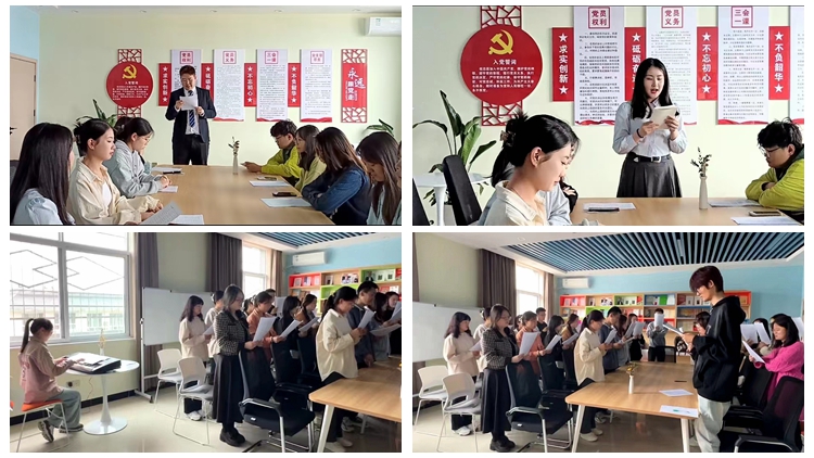 4月10日,學(xué)生第二黨支部開展“以文化之力,作答何以中國”學(xué)習(xí)交流活動(dòng)。黨員代表唐楠楠、韓雨馨帶領(lǐng)大家朗讀了《青春中國》《永遠(yuǎn)跟黨走》《如果信仰有顏色》等優(yōu)秀紅色經(jīng)典篇目。活動(dòng)期間,全體黨員認(rèn)真學(xué)習(xí)了習(xí)近平總書記關(guān)于推進(jìn)社會(huì)主義文化強(qiáng)國建設(shè)的重要論述,入黨積極分子分享了學(xué)習(xí)感悟。全體師生合唱《我和我的祖國》,將活動(dòng)氛圍推向了高潮,通過歌聲表達(dá)出對黨、對祖國的無限贊美和滿腔熱愛。