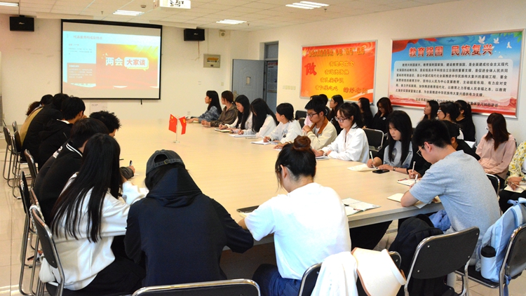 團(tuán)委組織部學(xué)生干部鄭文靜從“全國兩會相關(guān)知識”“全國兩會內(nèi)容概述”“全國兩會熱點(diǎn)學(xué)習(xí)”三個方面領(lǐng)學(xué)了全國兩會相關(guān)內(nèi)容。學(xué)生干部閆相娟帶領(lǐng)全體人員重溫入團(tuán)誓詞,再次許下不負(fù)時代、不負(fù)使命、不負(fù)未來的青春誓言。