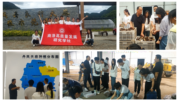 6月21日,陜西高校新型智庫商洛發(fā)展研究院根植地方團隊——旅游品牌助力康養(yǎng)之都建設團隊師生一行13人赴丹鳳縣良種天麻示范園,深入開展“規(guī)劃設計+良種推廣+市場營銷”三位一體的助農服務,為提升天麻附加值和產(chǎn)業(yè)綜合效益建言獻策。