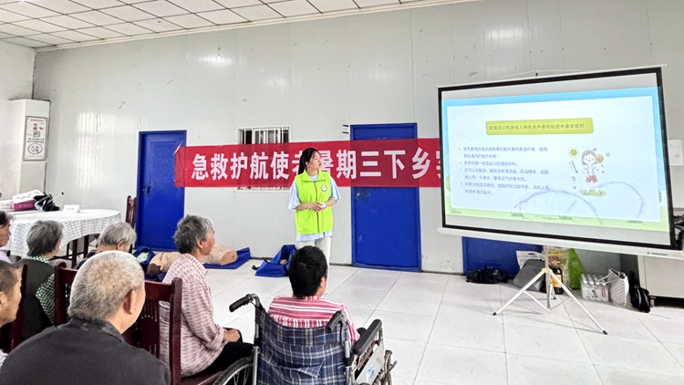 “急救護航使者團”在商洛市百順山莊老年公寓及東店子小學(xué)開展了“社區(qū)急救大演練-構(gòu)建安全生活圈”社會實踐活動。實踐團成員圍繞急救知識講座、慢性病科普、日常生活保健等主題,通過動畫演示、游戲互動及現(xiàn)場模擬等形式,開展了一系列豐富多彩的社區(qū)健康宣講活動,讓廣大群眾懂急救、會急救、敢急救,切實提高群眾急救技能水平。通過聆聽參與,現(xiàn)場群眾在短時間內(nèi)對心肺復(fù)蘇、海姆力克急救法、止血包扎等日常急救技能有了一定程度的掌握,為生命健康多提供一份保障。