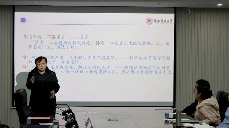 在專題培訓(xùn)環(huán)節(jié),學(xué)院邀請(qǐng)陜西師范大學(xué)教育學(xué)專家嚴(yán)文法教授以《優(yōu)質(zhì)課的標(biāo)準(zhǔn)及構(gòu)建策略》為題,為與會(huì)教師帶來(lái)一場(chǎng)精彩的專題學(xué)術(shù)報(bào)告。嚴(yán)教授通過(guò)生動(dòng)的教學(xué)應(yīng)用案例進(jìn)行詳細(xì)闡述,讓教師們深刻感受到數(shù)字化教學(xué)帶來(lái)的便利和高效。