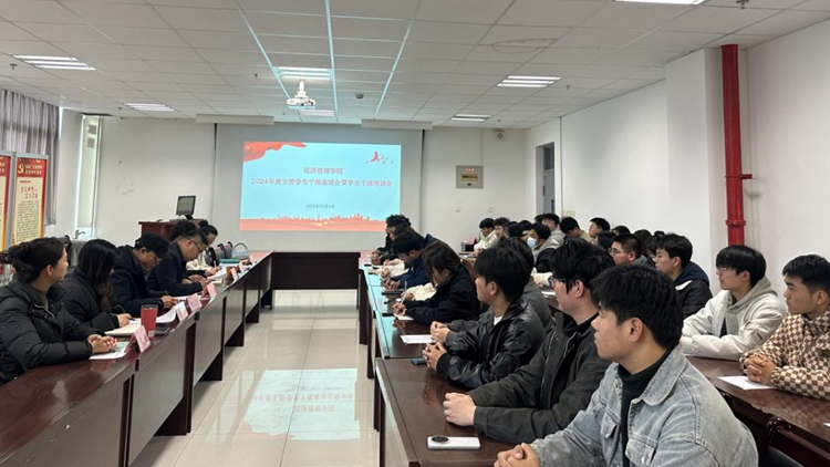 為全面落實立德樹人根本任務,加強師生溝通交流,深入了解學生的學習和生活狀況,12月4日,經濟管理學院舉辦領導老師與學生干部座談會暨學生干部培訓會,助力解決學生關心關注的焦點問題,關心和促進學生更好成長。經濟管理學院黨委副書記李川川、全體輔導員、學院各班團干部及學生會主席團成員共計51人參加了座談會。會議由學工辦主任趙東陽主持。