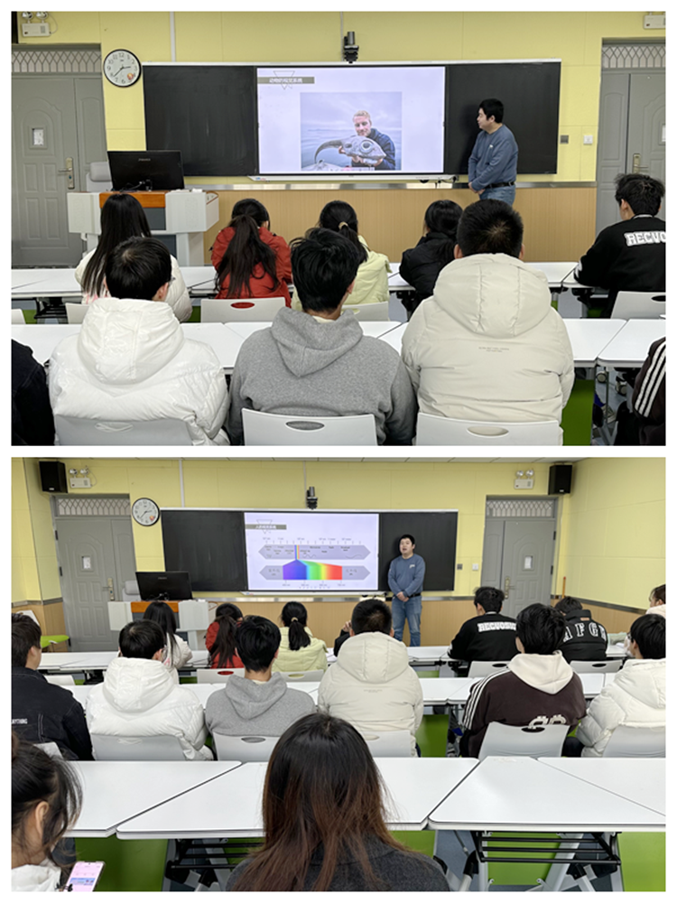 楊彪博士以人類視覺系統(tǒng)的基本結(jié)構(gòu)為切入點,深入講解了人眼的結(jié)構(gòu)、色彩感知原理、視覺信息和大腦的交互識別過程等內(nèi)容,通過生動的示意圖和模型展示,讓在場同學(xué)深入直觀地了解了人類視覺形成和識別的這一神奇現(xiàn)象。