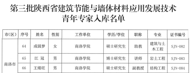 陜西省建筑節(jié)能與墻體材料發(fā)展應(yīng)用技術(shù)“青年專家”選聘工作是根據(jù)省住房和城鄉(xiāng)建設(shè)廳的有關(guān)要求,助力推動我省建筑節(jié)能和墻體材料應(yīng)用發(fā)展,形成“多區(qū)域輻射帶動,全范圍覆蓋服務(wù)”發(fā)展格局。第三批陜西省建筑節(jié)能與墻體材料應(yīng)用發(fā)展技術(shù)青年專家共有來自全省75位青年學(xué)者入選。