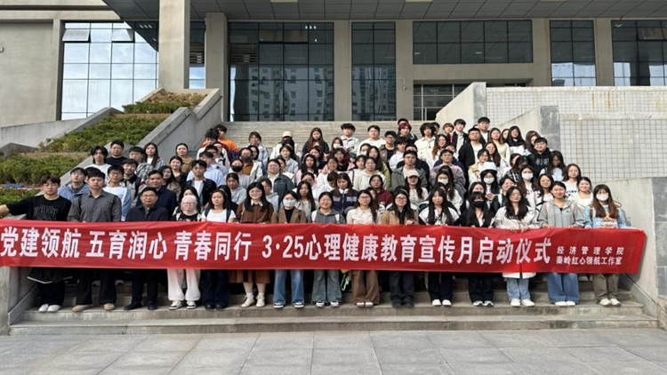 3月25日,經(jīng)濟(jì)管理學(xué)院舉行2025年“黨建領(lǐng)航 五育潤心 青春同行”心理健康教育季啟動儀式。學(xué)院黨委副書記李川川、全體輔導(dǎo)員及學(xué)生代表200余人參加啟動儀式。