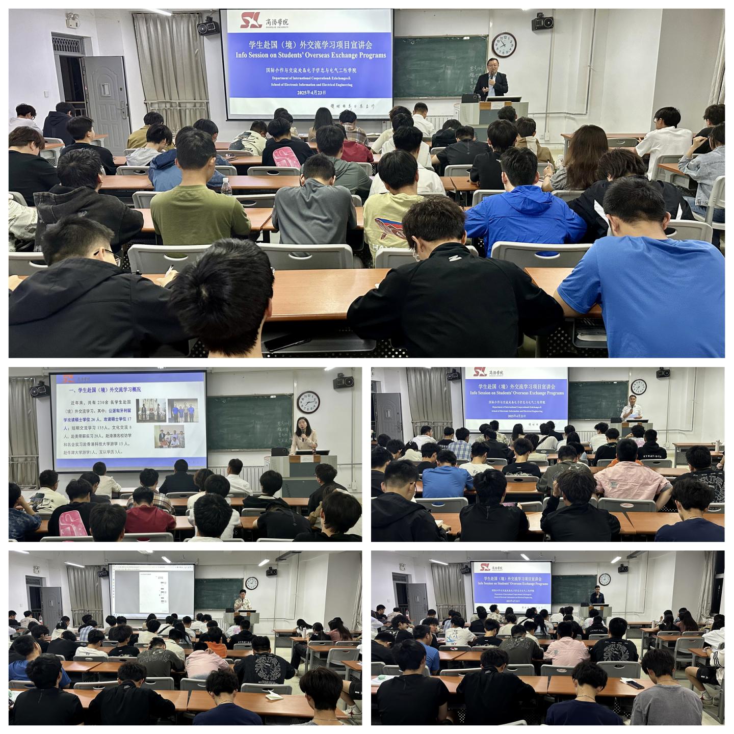 4月23日,電信學院聯(lián)合國際合作與交流處共同舉辦學生赴國(境)外交流學習項目宣講會。電信學院黨委書記袁訓鋒、國際合作與交流處外事辦公室主任楊嬌、全體輔導員及電氣工程及其自動化(中外合作辦學)專業(yè)2023、2024級全體學生共計240余人參加活動。