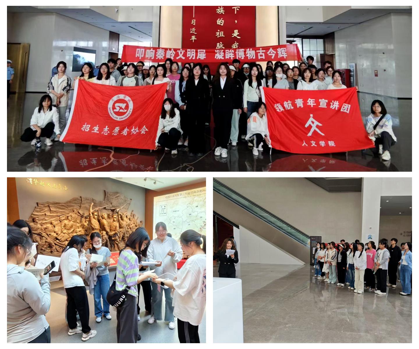 4月23日,人文學(xué)院聯(lián)合招生志愿者協(xié)會百余名學(xué)生走進秦嶺博物館,開展“叩響秦嶺文明扉 凝眸博物古今輝”主題研學(xué)活動。