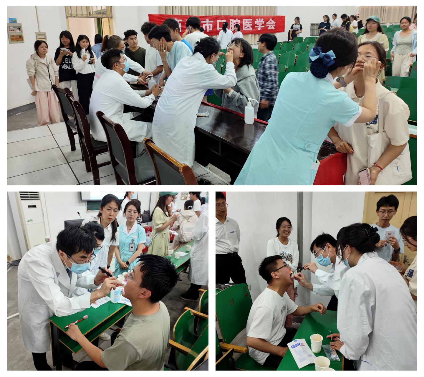 為了加深同學們對有效刷牙方式的印象,醫(yī)務人員向到場的每位同學發(fā)放牙刷并現(xiàn)場示范刷牙方式。在互動環(huán)節(jié),面對同學們提出的“用什么牙膏可以刷白牙齒”“用什么漱口水可以緩解牙齦發(fā)炎”等問題,李阿峰耐心解答,現(xiàn)場氣氛熱烈。講座結束后,商洛市中心醫(yī)院口腔科醫(yī)師團隊現(xiàn)場為有需要的同學進行了義診咨詢,醫(yī)師們?yōu)閹熒M行初步口腔檢查并給予了專業(yè)的指導意見和診療建議。