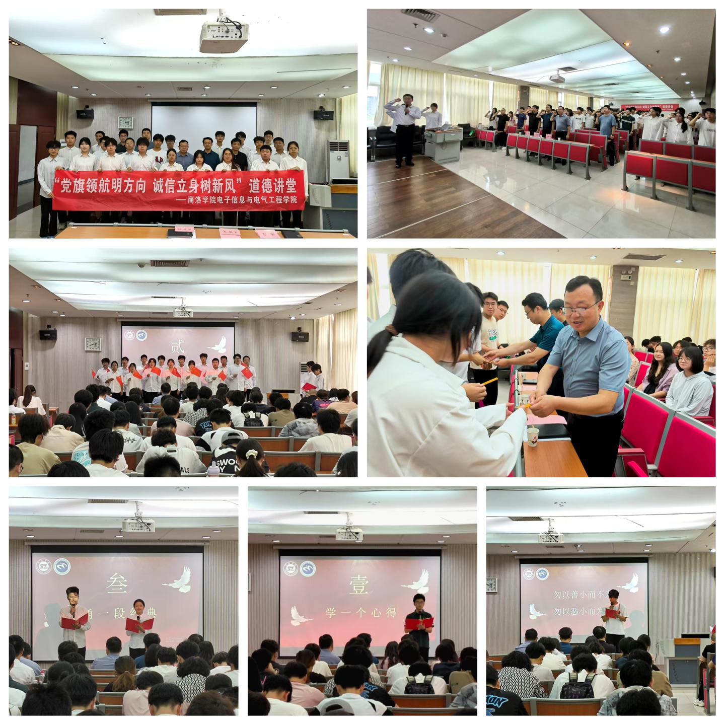 為弘揚誠信美德,筑牢理想信念根基,6月18日,電信學院舉辦“黨旗領(lǐng)航明方向 誠信立身樹新風”主題道德講堂活動。校黨委委員、宣傳部部長王霄飛,電信學院黨委書記袁訓(xùn)鋒、院長陳垚,學院全體黨支部書記、輔導(dǎo)員、學生代表170余人參加活動。
