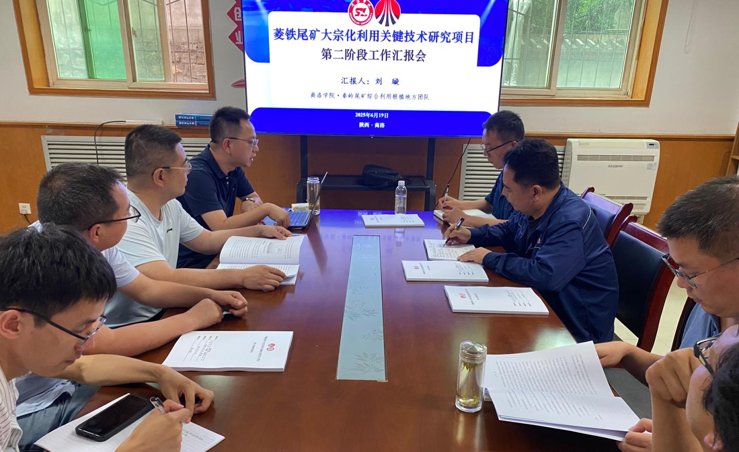 團隊負責人劉璇詳細匯報了前期在校企聯(lián)合尾礦綜合利用實驗中心開展的《菱鐵尾礦大宗化利用關鍵技術(shù)研究項目》研究進展,介紹了菱鐵尾礦路面材料、真石漆涂料、土壤改良材料、特種砂漿、混凝土、邊坡治理材料等技術(shù)參數(shù)、成果指標等情況,簡述了團隊后期的工作計劃。