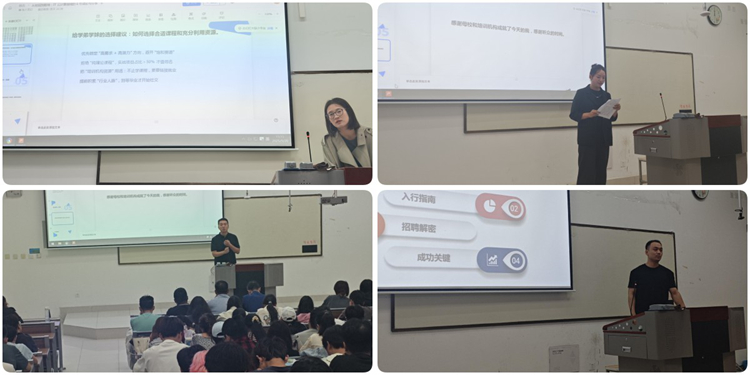 分享會上,韓杏結(jié)合自身成長及擔(dān)任搜狐暢游高級項目經(jīng)理的相關(guān)經(jīng)歷,圍繞“職業(yè)規(guī)劃的錨點與動態(tài)調(diào)整”展開分享,她強調(diào)職業(yè)規(guī)劃并非一成不變的“死計劃”,而要在實踐中根據(jù)自身優(yōu)勢與行業(yè)趨勢靈活調(diào)整。孟丹梅帶來了“專業(yè)學(xué)習(xí)與學(xué)歷提升的雙向賦能”主題分享,她介紹了自己考取廣西大學(xué)碩士研究生的備考經(jīng)驗及在聯(lián)想集團、國網(wǎng)商洛供電公司的工作歷程,建議大家盡早明確目標(biāo),做好職業(yè)規(guī)劃。史曉東則以“從校園到名企:實習(xí)與就業(yè)的探索之路”為主題,分享了自己在小米公司、中國聯(lián)通商洛市分公司的職業(yè)經(jīng)歷。強調(diào)實習(xí)是大學(xué)生接觸職場的重要窗口,建議學(xué)弟學(xué)妹們在校期間積極爭取優(yōu)質(zhì)實習(xí)機會,提前了解行業(yè)動態(tài)。在三位校友分享后,搜狐HR張恒從企業(yè)招聘視角,解讀“互聯(lián)網(wǎng)行業(yè)人才需求與能力要求”。他建議學(xué)生在校期間,通過參加學(xué)科競賽、社團項目、科研實踐等方式,全方位鍛煉自己。