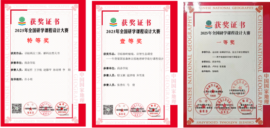 2025 年5月,在“九州杯”全國(guó)研學(xué)課程設(shè)計(jì)大賽中,地理專(zhuān)業(yè)許小明教師指導(dǎo)的地理科學(xué)專(zhuān)業(yè)團(tuán)隊(duì)(冀延哲、王宇航、趙滕甲、孫詩(shī)博、李陽(yáng))表現(xiàn)突出 ,團(tuán)隊(duì)共同完成的《走進(jìn)兩漢三國(guó),解碼自然天書(shū)》的研學(xué)課程設(shè)計(jì),從 2000 多項(xiàng)參賽作品中脫穎而出,一舉奪得成果組特等獎(jiǎng)。