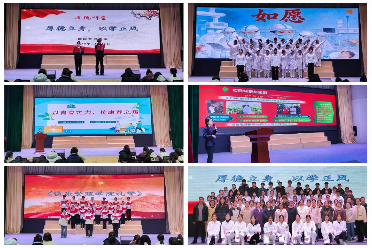12月24日,健康管理學(xué)院在八號教學(xué)樓大學(xué)生活動中心舉辦“厚德立身,以學(xué)正風(fēng)”主題道德講堂,學(xué)院師生代表300余人參加活動。