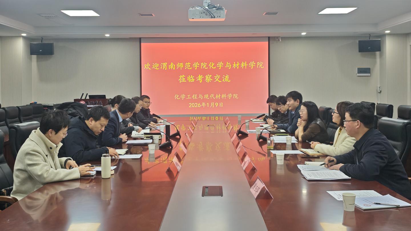 為深化校際合作,推動(dòng)學(xué)科專(zhuān)業(yè)建設(shè)、實(shí)驗(yàn)室發(fā)展及人才培養(yǎng)質(zhì)量提升,1月9 日,渭南師范學(xué)院化學(xué)與材料學(xué)院院長(zhǎng)劉展晴一行6人來(lái)化材學(xué)院開(kāi)展調(diào)研交流。學(xué)院黨政負(fù)責(zé)人、系主任、實(shí)驗(yàn)室中心主任參加會(huì)議,會(huì)議由院長(zhǎng)曹寶月主持。