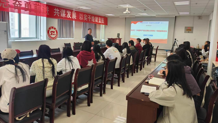 為進(jìn)一步規(guī)范組織生活,加強(qiáng)黨員和入黨積極分子黨性教育和黨紀(jì)黨規(guī)教育,推動(dòng)黨紀(jì)學(xué)習(xí)教育走深走實(shí),5月9日,經(jīng)濟(jì)管理學(xué)院黨委開展“黨組織書記講黨紀(jì)學(xué)習(xí)教育主題黨課”活動(dòng)。院黨委書記高擴(kuò)昌以《新修訂<中國共產(chǎn)黨紀(jì)律處分條例》>》為題為經(jīng)濟(jì)管理學(xué)院學(xué)生黨支部黨員、預(yù)備黨員、入黨積極分子講授專題黨課。