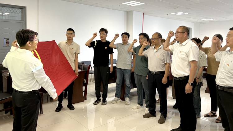 在郭瑾的帶領(lǐng)下,全體黨員同志重溫入黨誓詞。鏗鏘有力的誓言回蕩在會議室,激勵著每一位黨員不忘初心、牢記使命,繼續(xù)為黨和人民的事業(yè)努力奮斗。