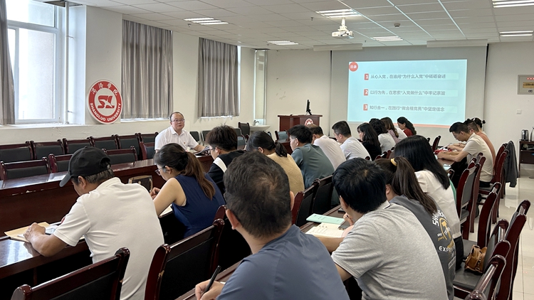 為推動黨紀學(xué)習(xí)教育走深走實,7月1日,副校長郭瑾以“不忘初心,筑牢忠誠,以奮斗姿態(tài)共繪學(xué)校事業(yè)新篇章”為題為經(jīng)管學(xué)院教工第一黨支部黨員講授專題黨課。經(jīng)濟管理學(xué)院黨政班子成員,科級以上黨員干部,系主任及教工第一黨支部全體黨員參加學(xué)習(xí)活動。