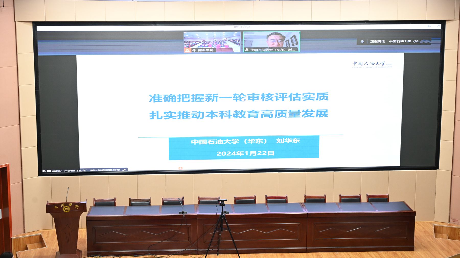 劉華東教授以《準(zhǔn)確把握新一輪審核評(píng)估實(shí)質(zhì) 扎實(shí)推動(dòng)本科教育高質(zhì)量發(fā)展》為題,從新一輪審核評(píng)估的新理念新要求新變化、需要重點(diǎn)關(guān)注的問(wèn)題等方面,詳細(xì)介紹了新一輪本科教育教學(xué)審核評(píng)估工作的重大意義、基本原則和工作重點(diǎn)。