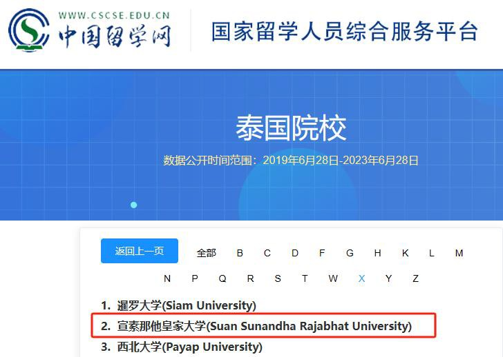 宣素那他皇家大學(xué)(Suan Sunandha Rajabhat University)是中國(guó)教育部認(rèn)證、首批推薦泰國(guó)重點(diǎn)高校、中國(guó)教育部涉外監(jiān)管信息網(wǎng)推薦留學(xué)院校。大學(xué)設(shè)有14個(gè)院系以及附屬小學(xué)與中學(xué),本科、碩士、博士專業(yè)學(xué)位學(xué)科120余個(gè),現(xiàn)有全日制在校生29000余名。宣大連續(xù)20年在泰國(guó)皇家大學(xué)中綜合排名第1位;是教育部留學(xué)服務(wù)中心戰(zhàn)略合作伙伴,長(zhǎng)期與國(guó)內(nèi)外多所國(guó)際知名院校長(zhǎng)期進(jìn)行學(xué)術(shù)合作與交流,出席中國(guó)-東盟及“一帶一路”教育展、中國(guó)國(guó)際巡回教育展等。