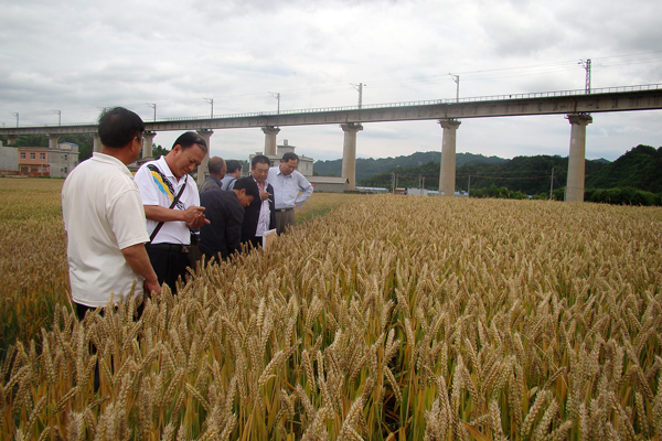 5月28日,陜西省種子管理站研究員姚撐民,西北農(nóng)林科技大學(xué)農(nóng)學(xué)院小麥育種專家高翔、謝惠民教授,商洛市種子管理站副站長賈振江、高級(jí)農(nóng)育師周龍等5位專家,對(duì)我校生物醫(yī)藥工程系高級(jí)實(shí)驗(yàn)師于浩世選育的小麥新品種“商麥1619”進(jìn)行了田間預(yù)審。校黨委副書記、院長張景書接待了專家一行,并對(duì)我校小麥育種工作的開展提出了具體要求