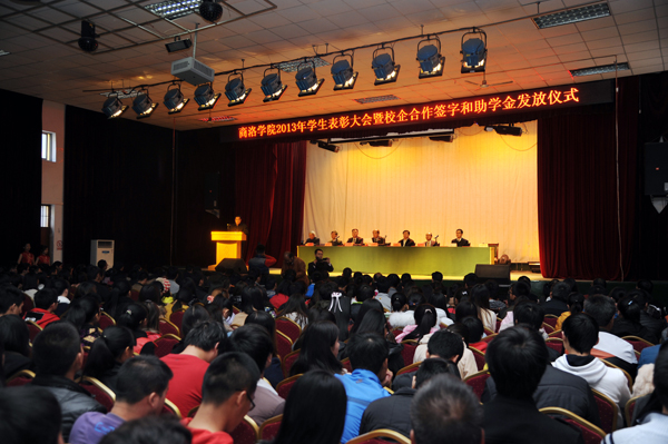 11月20日,我校隆重舉行2013年學(xué)生表彰大會(huì)暨校企合作簽字和助學(xué)金發(fā)放儀式。校黨委書記張景書、院長(zhǎng)劉建林、黨委副書記左曉民、副院長(zhǎng)魏書堂,商洛供電局黨委書記陳飛、紀(jì)委書記楊軍,商洛市郵政局局長(zhǎng)王偉、調(diào)研員王林出席大會(huì)。各系各相關(guān)部門負(fù)責(zé)人、獲獎(jiǎng)學(xué)生及學(xué)生代表參加大會(huì)。會(huì)議由左曉民主持