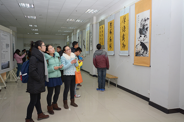 為紀(jì)念毛澤東同志誕辰120周年,抒發(fā)我校師生對(duì)毛主席的深厚感情,歌頌黨的豐功偉績(jī),促進(jìn)了書畫愛好者之間的交流,12月10日上午,由黨委宣傳部、藝術(shù)系黨總支主辦的劉宇昭詩(shī)詞書畫作品展在藝術(shù)系展廳開幕。校黨委副書記左曉民,商洛市民間藝術(shù)家協(xié)會(huì)主席田野,省、市書畫名家李子賢、魏振中、崔來雋、崔學(xué)民、張中惠及我校藝術(shù)系師生和書畫愛好者出席了開幕式