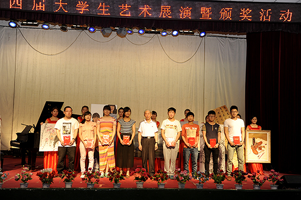 6月8日,我校第四屆大學生藝術展演暨頒獎活動在大學生活動中心舉行。校黨委副書記左曉民、副校長魏書堂,教務處處長劉端森、宣傳部部長郭英勇、學生處處長石啟英及校團委副書記彭曉邦參加活動,并為獲獎選手頒獎
