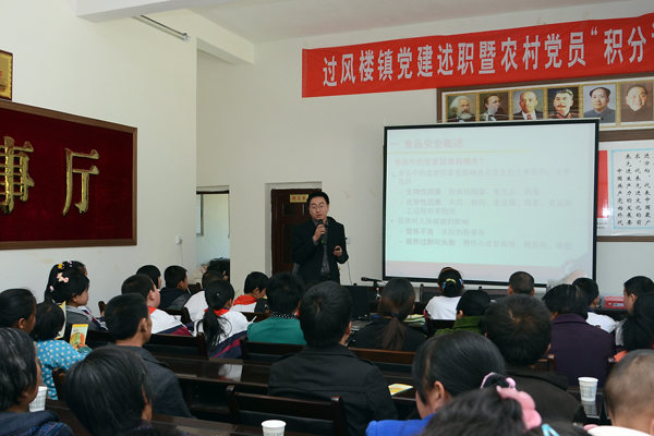4月11日下午,在商洛市商南縣過風(fēng)樓鎮(zhèn)白玉溝村的黨員活動室里,當(dāng)?shù)卮迕窈土鴺錇承W(xué)師生共100余人聽取了我校專家郭耀東博士所作的食品安全知識科普講座,并領(lǐng)到了免費的科普書籍與宣傳資料。這是商洛市與我校聯(lián)合舉辦的“食品安全科普進校園、進社區(qū)”系列活動的一部分。商洛市科協(xié)副主席閔利民、我??蒲刑幪庨L李繼高、生物醫(yī)藥工程系主任王新軍親臨現(xiàn)場并與村民們互動交流