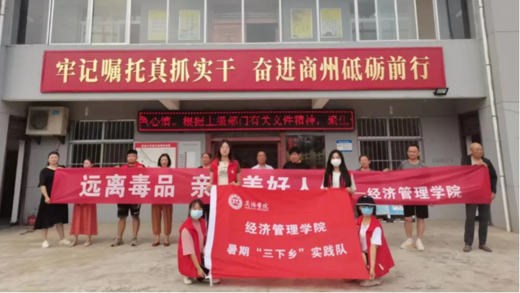為踐行“我為群眾辦實事”實踐活動,引導學生把學習成果落實到工作實踐中,幫助大學生加強對科學文化教育的認識,進一步提高群眾對毒品的認識和自我防范能力,2022年7月,經濟管理學院團總支“遠離毒品,關愛未來”暑期“三下鄉(xiāng)”社會實踐團隊走進商洛市商州區(qū)靜泉社區(qū)服務中心開展活動。社會實踐團隊成員在靜泉社區(qū)負責人的引導下為當?shù)鼐用耖_展宣傳講座,發(fā)放宣傳冊以及禮品,面對面普及科學知識,傳播科學防范思想,提高村民...